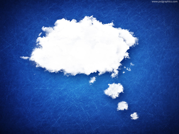 Beautiful white bubble clouds on a blue textured background. Thought cloud concept, may be used in many ways for both print and web.