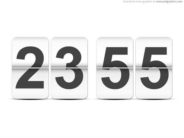 Flip clock with white background segments and black numbers, PSD template. Might be used as a static graphic to represent counting, timer, alarm etc., and also in a dynamic apps.