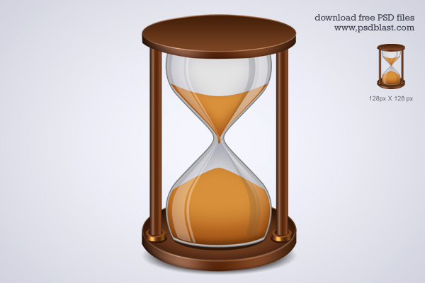 Wooden hourglass illustration, classic clock icon made in Photoshop CS3. Cool symbol of time, sand clock web graphic in PSD format.![]()